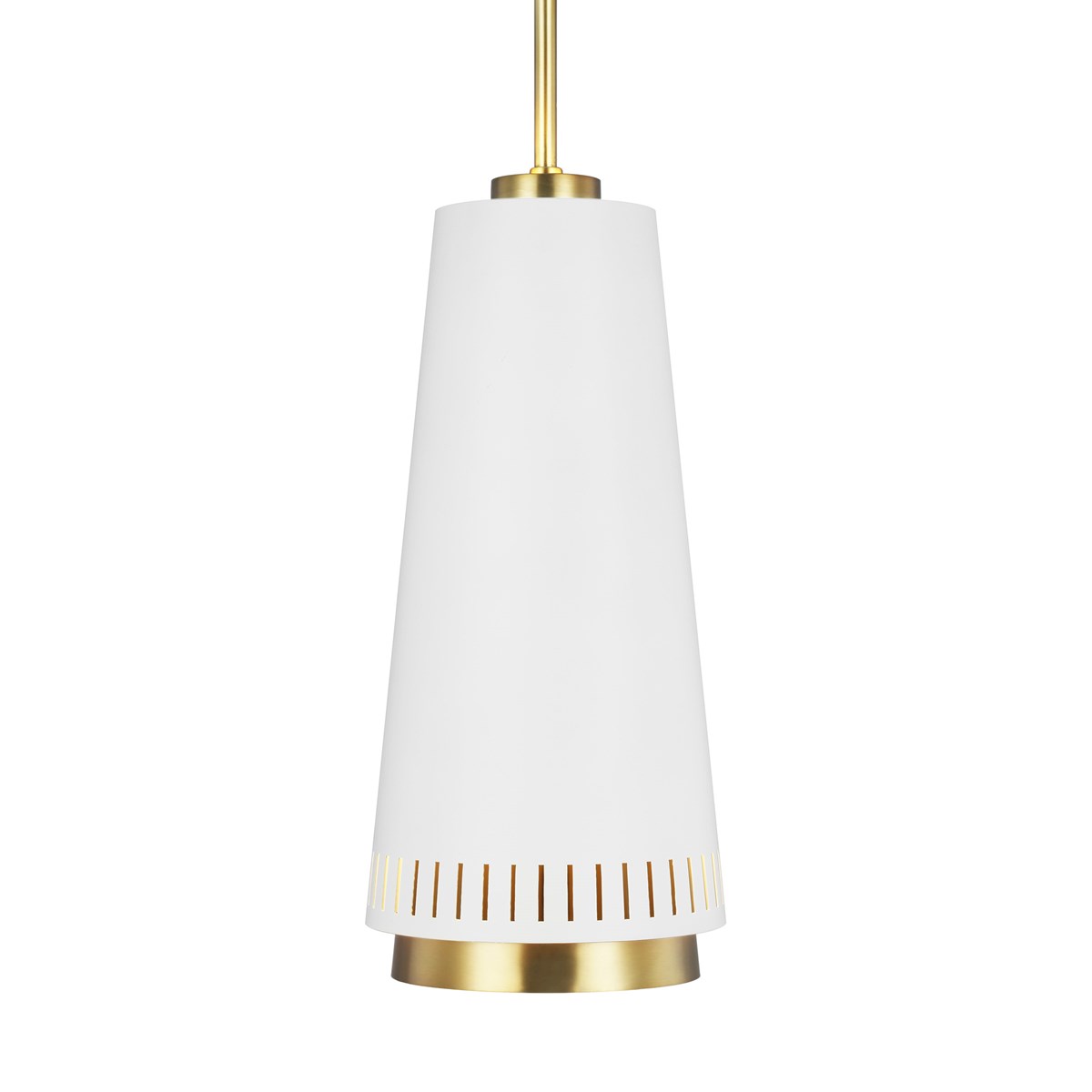 Carter is a two-tone beauty with a modern Matte White finish paired with sleek Burnished Brass that brightens up any space. Fine perforated details on the conical shades heighten visual impact on both the pendant and flushmount fixtures.