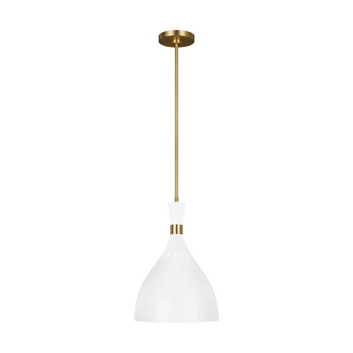 Pairing a rich, two-tone finish with bold, geometric lines give Joan luxe appeal. Warm Burnished Brass joins with either Midnight Black or Matte White in a thoughtful juxtaposition of contrasting finishes on the 5-light chandeliers, the 1-light wall sconces and the 1-light table lamps. Each iconic, hourglass-inspired shade features small perforations towards its crown, allowing a soft glow to shine through, further articulating the distinctive details of this chic collection.