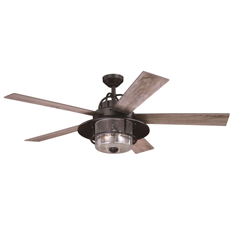 The Charleston 56” Indoor/Outdoor Fan brings a trendy nautical look to your living spaces. Whether it is a warm night out on the porch or a quiet night inside your home. Rest assured with the Charleston fan you will get the right air flow for your needs. The New Bronze finish and clear seeded glass styled on the light kit combine perfectly to bring you a stylish look. You can choose between two blade colors: Driftwood or Dark Maple for even more flexibility.