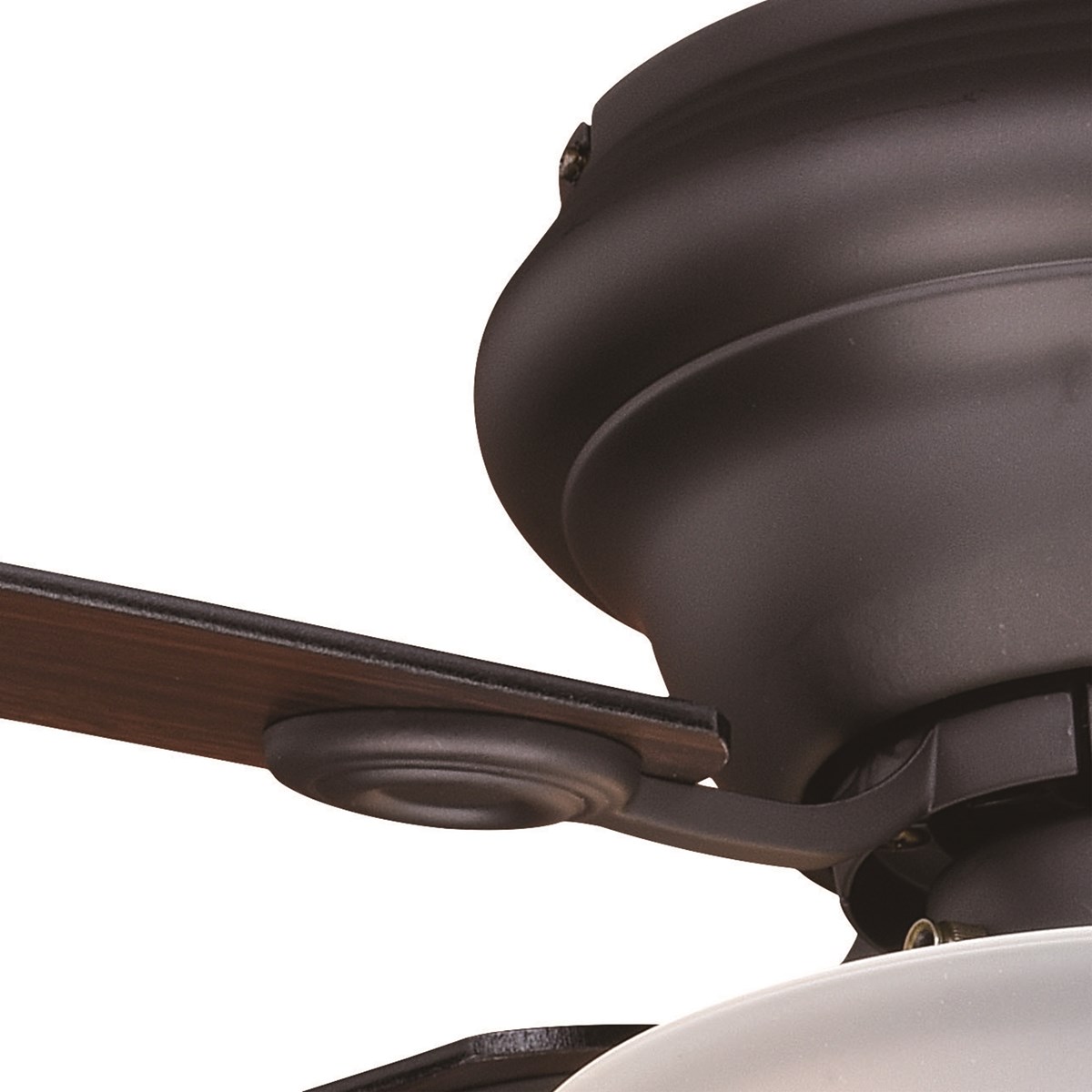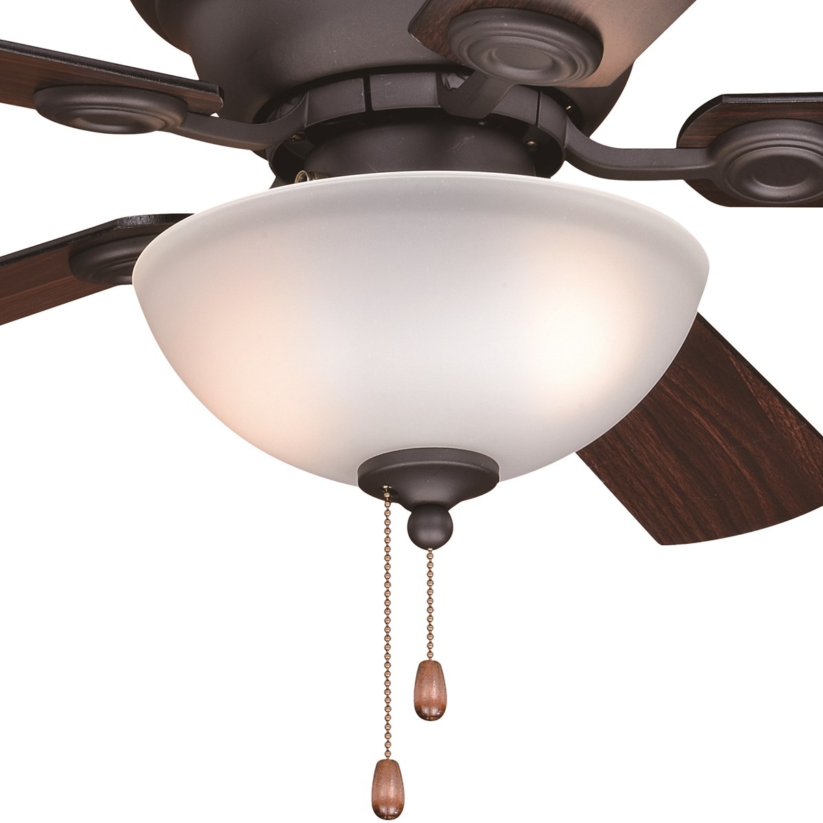 Fan-tastic! The Expo with its 5 wood look blades, finished with noble bronze or satin nickel accents and frosted glass shade, creates a warm and inviting glow of light in any room. Function and style, become one, in the stylishly designed Expo.