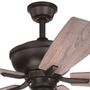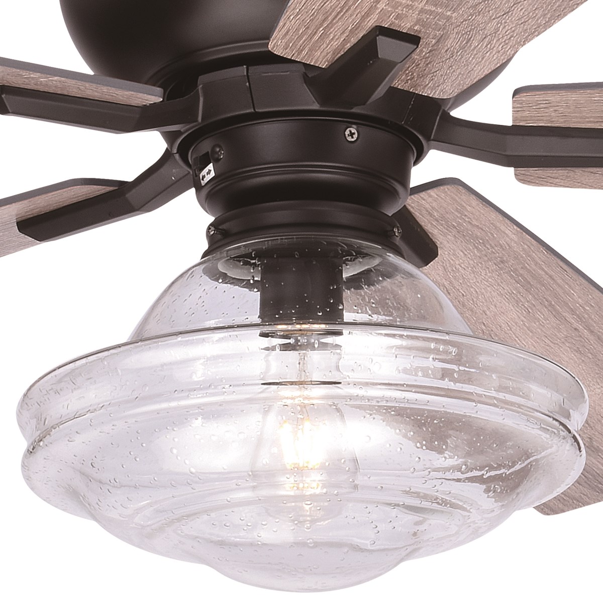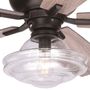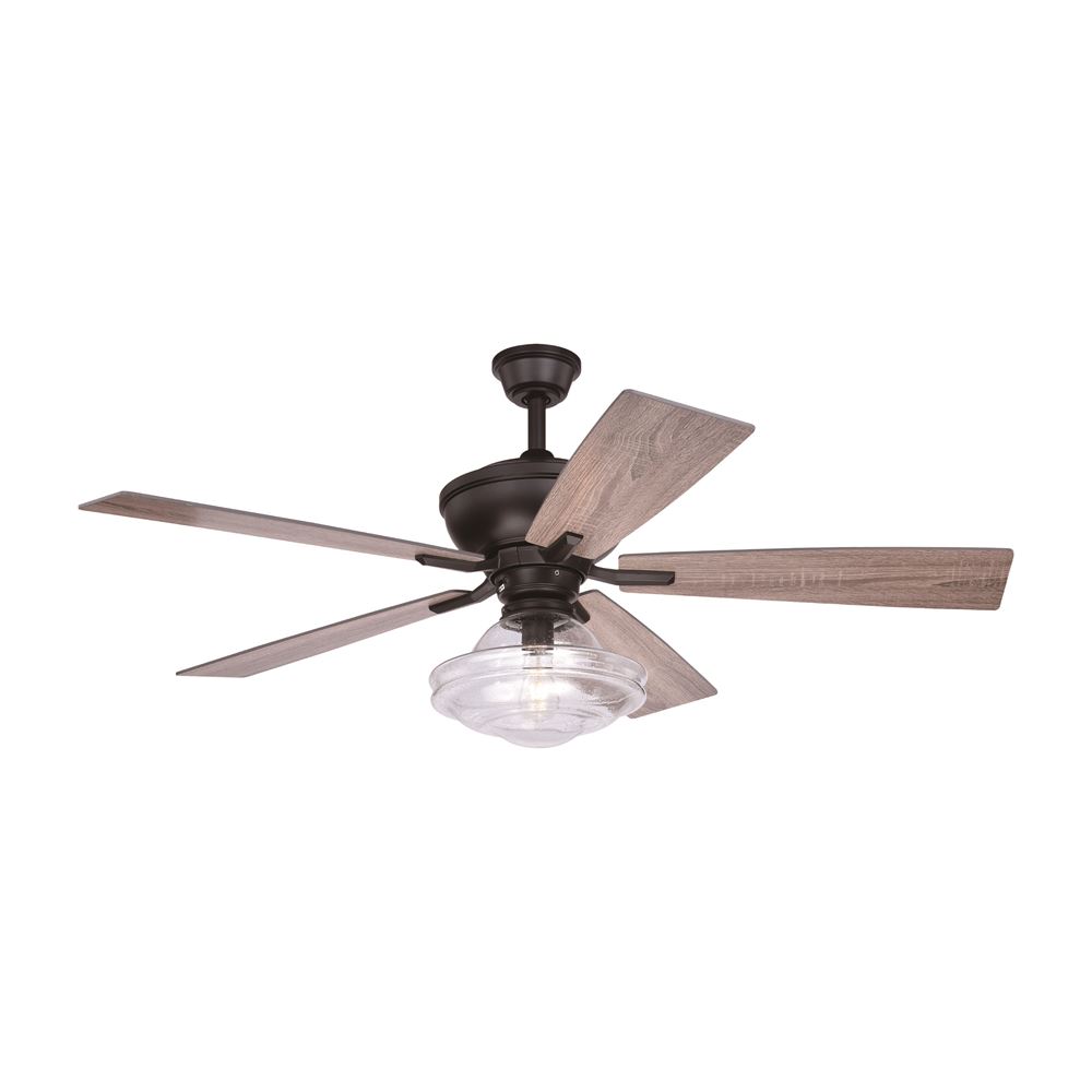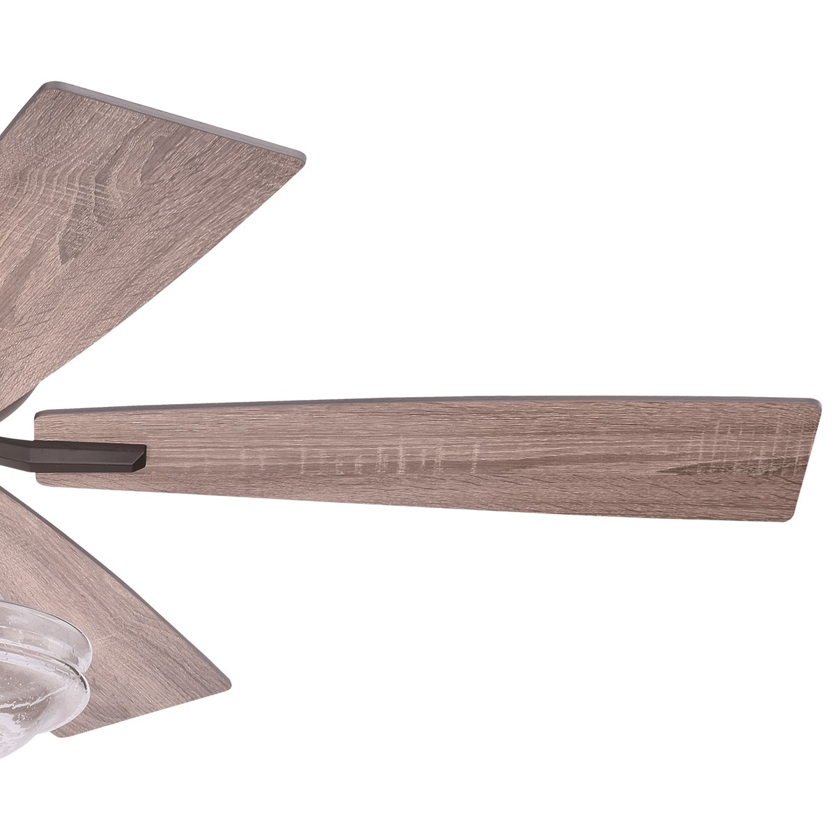 A modern rustic aesthetic best describes the new Huntley fan. A bronze or satin nickel motor is warmly met with wood fan blades. A generously sized clear seeded schoolhouse glass globe compliments the rustic design. The Huntley is a welcoming addition to any interior space of the home.