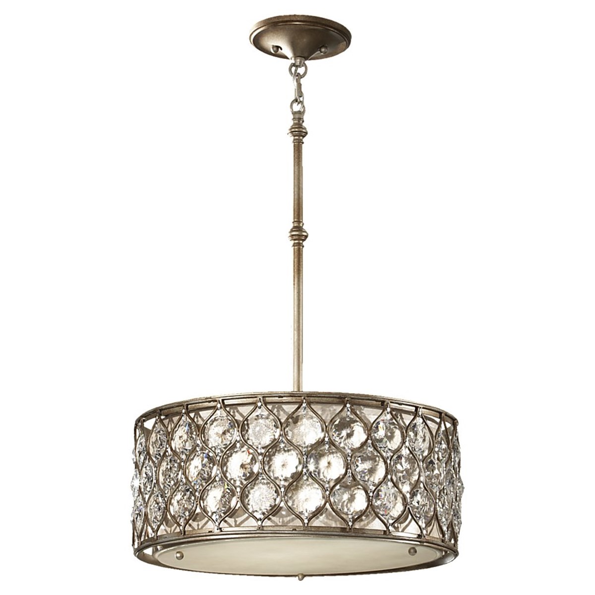 The Lucia lighting collection by Feiss is a completely fresh, contemporary take on crystal light fixtures. The unique, disk-shaped Sunflower Shape Bauhinia crystals are suspended within the intricate metal work presented in a Burnished Silver finish, which combine to create these sleek profiles surrounding inner Linen drum shade. The Leila lighting collection is a sister style, utilizing the same crystals and metal work in orb and sunburst silhouettes.