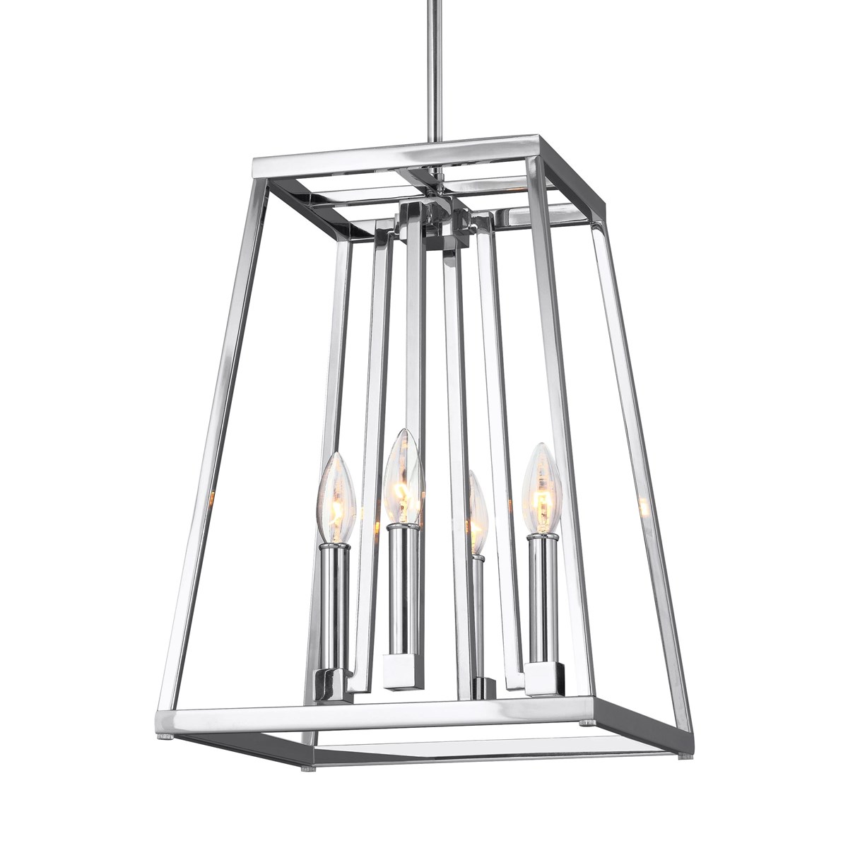 The transitional Conant lantern pendant collection by Feiss is highly structured and infinitely inviting, and the crisp architectural lines of these open lanterns are richly warmed by a new Gilded Satin Brass finish or modernized with a bright Chrome finish. Intricate square details at the base of each floating candle tube exemplify the artistry and skill required to create these majestic lighting fixtures.