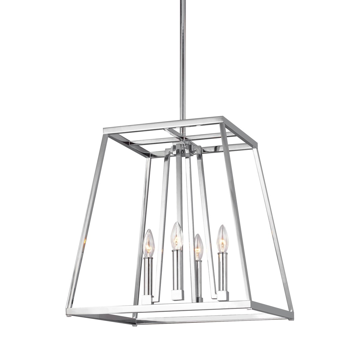 The transitional Conant lantern pendant collection by Feiss is highly structured and infinitely inviting, and the crisp architectural lines of these open lanterns are richly warmed by a new Gilded Satin Brass finish or modernized with a bright Chrome finish. Intricate square details at the base of each floating candle tube exemplify the artistry and skill required to create these majestic lighting fixtures.