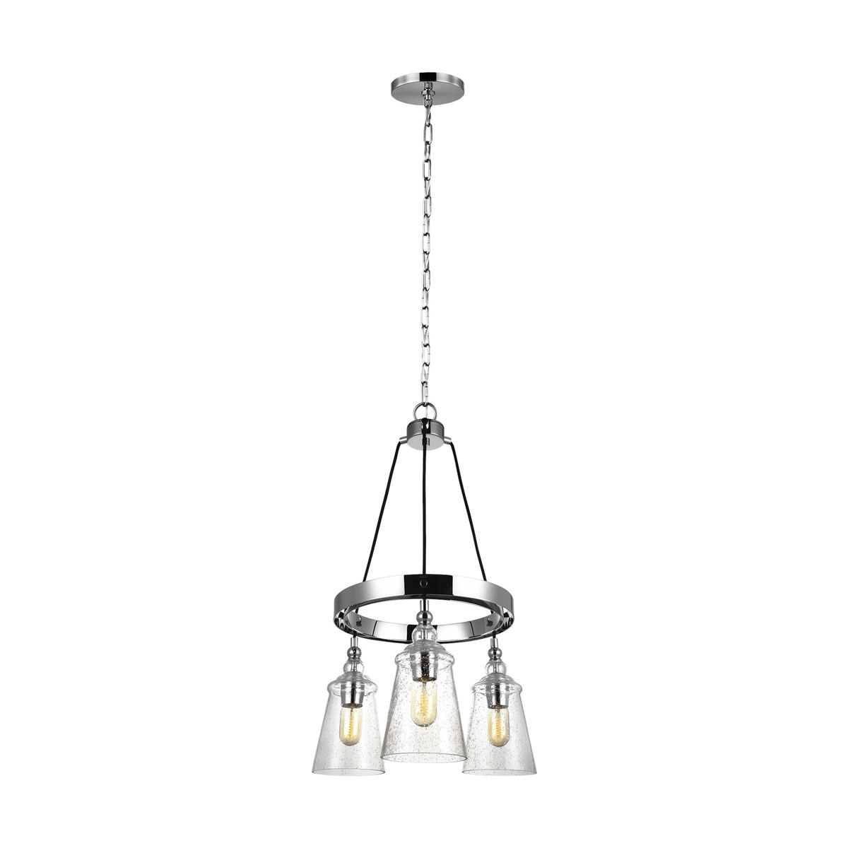 Loras is a contemporary take on historic, industrial designs. The transitional chandeliers feature multiple corded pendants beautifully suspended on either a Dark Weathered Iron or Chrome-finished frame. Clear Seeded glass shades on black fabric cords add dimension and charm to this vintage-inspired silhouette.