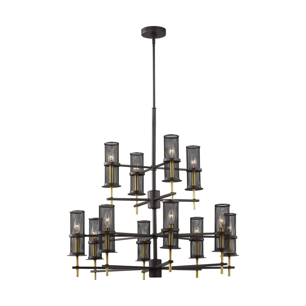 The elongated Burnished Brass candle stems of Palmyra shine in gilded contrast to the Oil Rubbed Bronze finish. Palmyra provides an air of refined masculinity and streamlined sophistication as light gently diffuses through cylindrical metal mesh shades.
