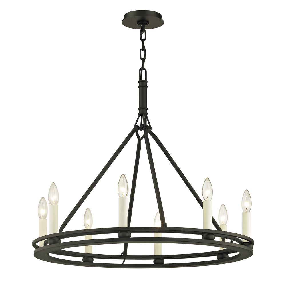 This Sutton 8-LT Chandelier from Troy has a finish of Textured Black and fits in well with any Elevated Industrial, The Classics style decor.