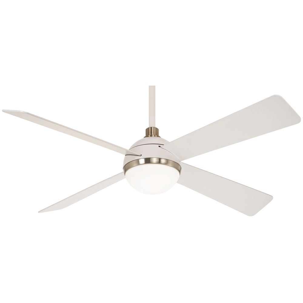 This Orb - 54" LED Ceiling Fan from Minka Aire has a finish of Flat White/Brushed Nickel Fini and fits in well with any Transitional style decor.