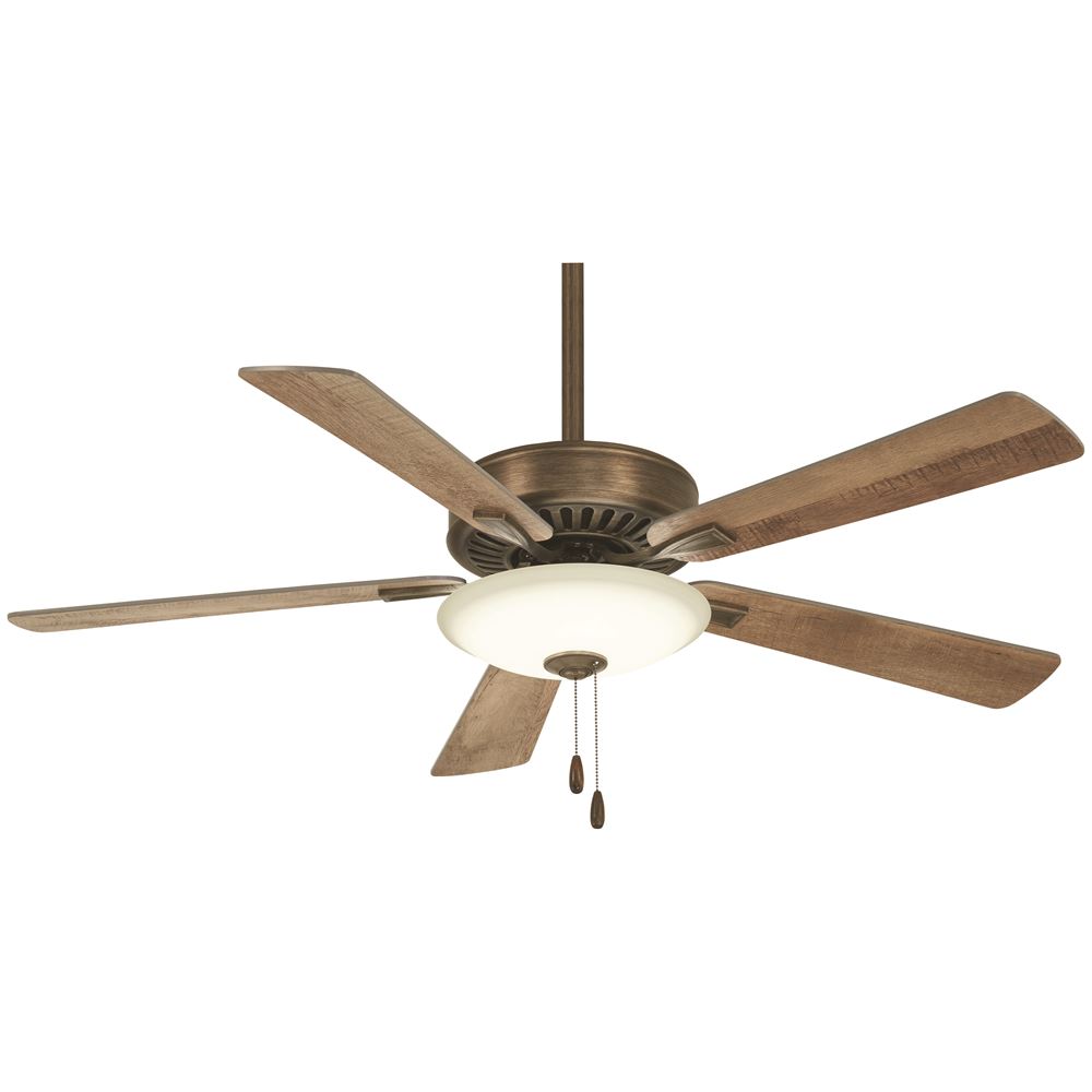 This Contractor Uni-Pack - LED 52" Ceiling Fan from Minka Aire has a finish of Heirloom Bronze and fits in well with any Traditional style decor.