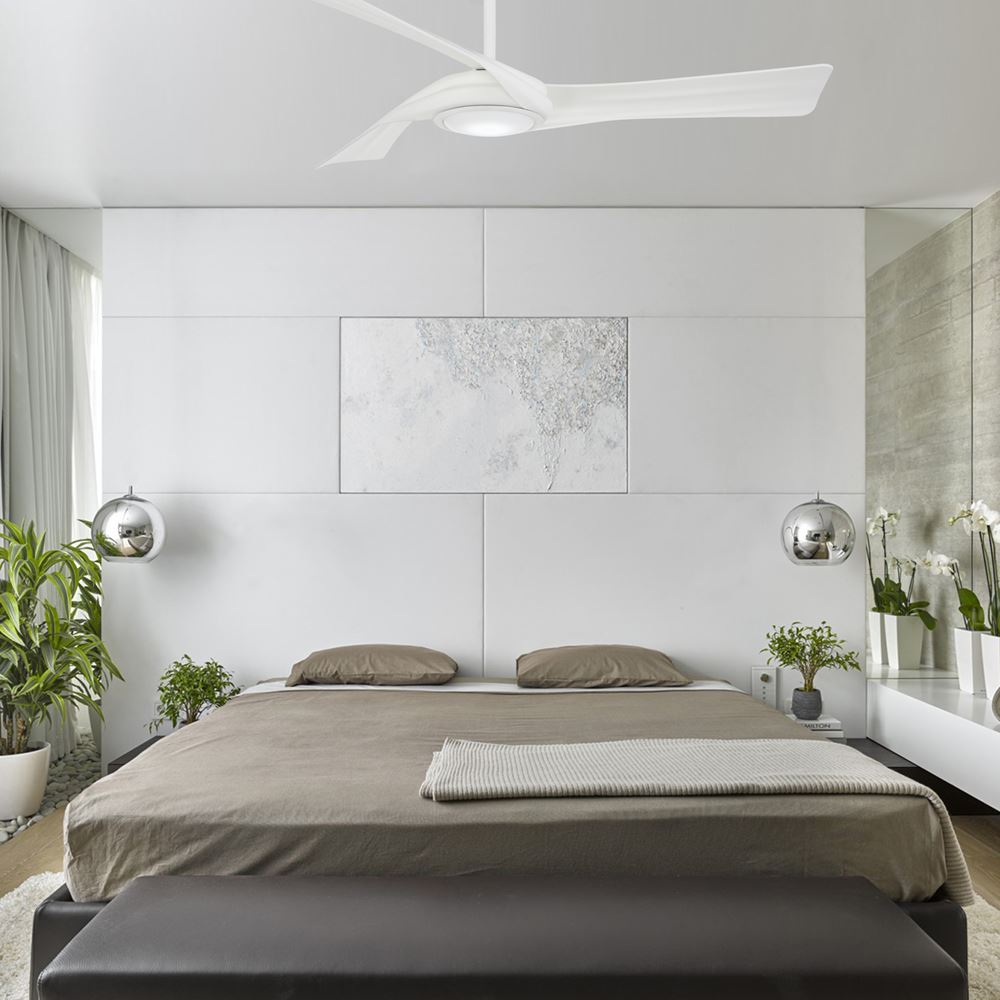 This Curl - LED 60" Ceiling Fan from Minka Aire has a finish of Flat White and fits in well with any Transitional style decor.