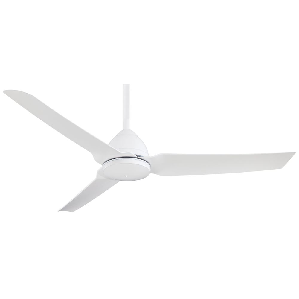 This Java - 54" Ceiling Fan from Minka Aire has a finish of Flat White and fits in well with any Contemporary style decor.