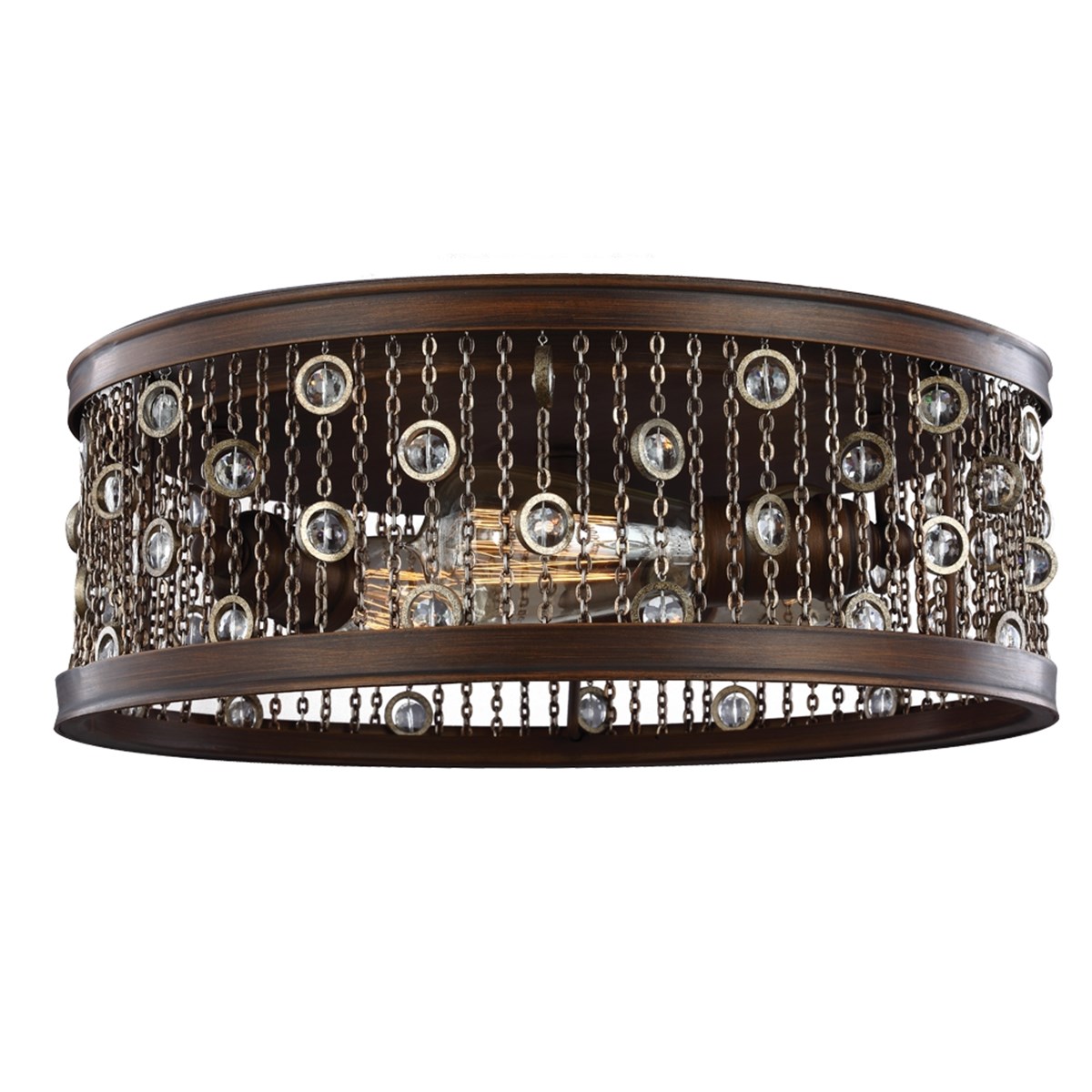 Modern and rustic themes work beautifully together in the Colorado Springs lighting collection by Feiss. Clear Crystals floating in metal rings are threaded onto chain and strung into drum shades. This unusual marriage of dark and light fashioned into a familiar, transitional silhouette brings a bit of glamour to the ultimate mountain luxe cabin or urban loft.