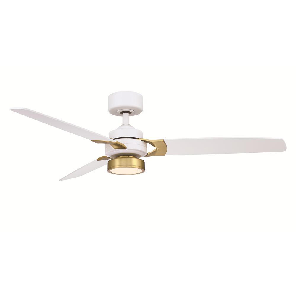 Amped 52 inch Indoor Ceiling Fan with Matte White Blades and LED Light Kit - Matte White and Brass