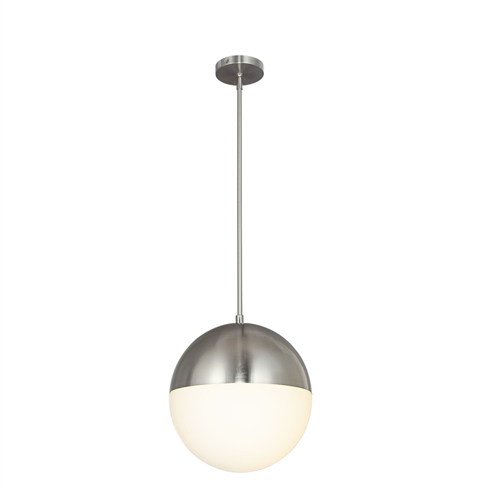 This Ion 1-Light 14" Pendant from Justice Design's Evolv line has a finish of Brushed Nickel and fits in well with any Contemporary style decor.