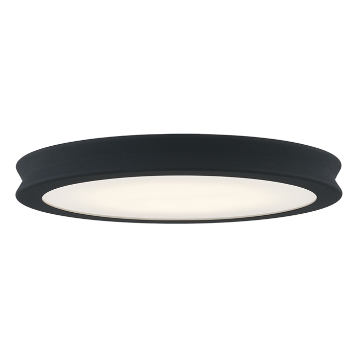 This Bevel 16" LED Flush Mount from Justice Design's Evolv line has a finish of Matte Black - Textured and fits in well with any Contemporary style decor.