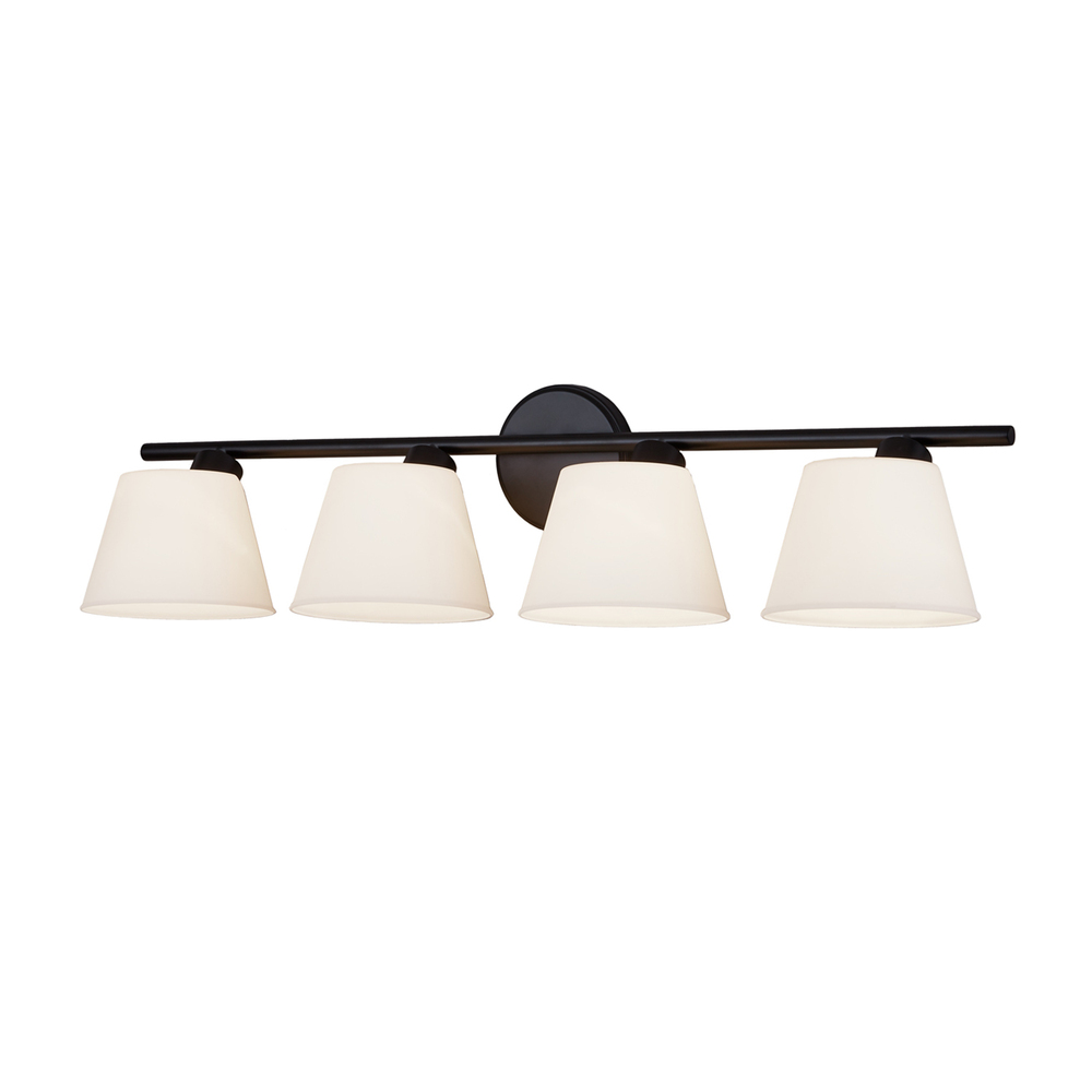 This 4-Light Bath Bar from Justice Design has a finish of Matte Black and fits in well with any Transitional style decor.