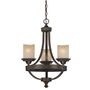 The Halifax collection features a formal yet rustic design in a black walnut finish. Its crème cognac glass shades are curved at the tops to replicate naturally melting tumbler candles. This classical shape with thick metal detailing provides a striking look when incorporated into traditional interiors. This 3 light mini chandelier is perfect for use in a kitchen or dining area. Medium screw base lamping provides maximum light output, and flexibility in bulb choice.