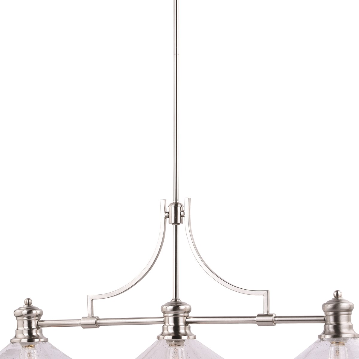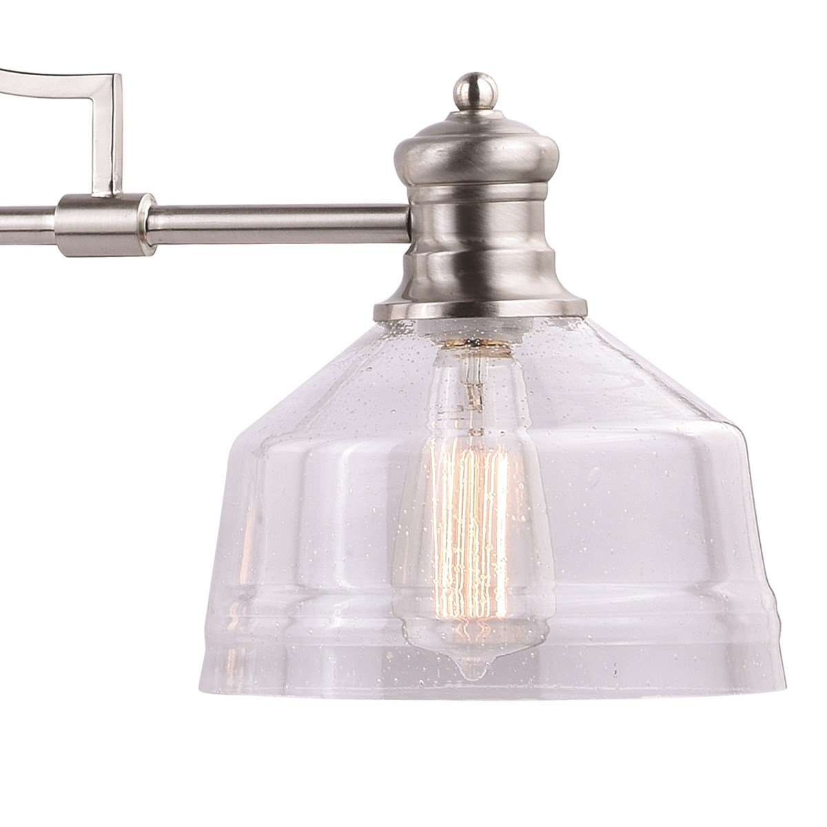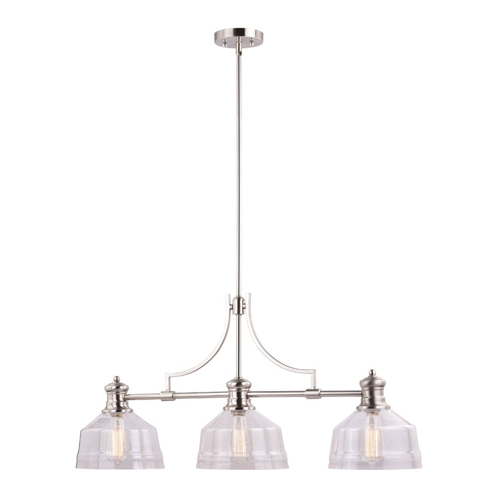 The Beloit collection a welcoming and inviting feel to your kitchen or living spaces. Soft curving lines finished in satin nickel, are paired with large clear seeded glass shades, creating a look accents the most comfortable spaces.