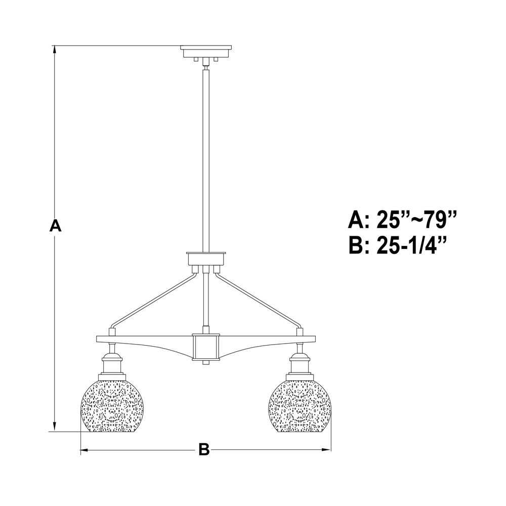 Adjustable height; 25-79 inches using 4 x 12-in, 1 x 6-in, 1 x 3-in of included down rods; sloped ceiling compatible