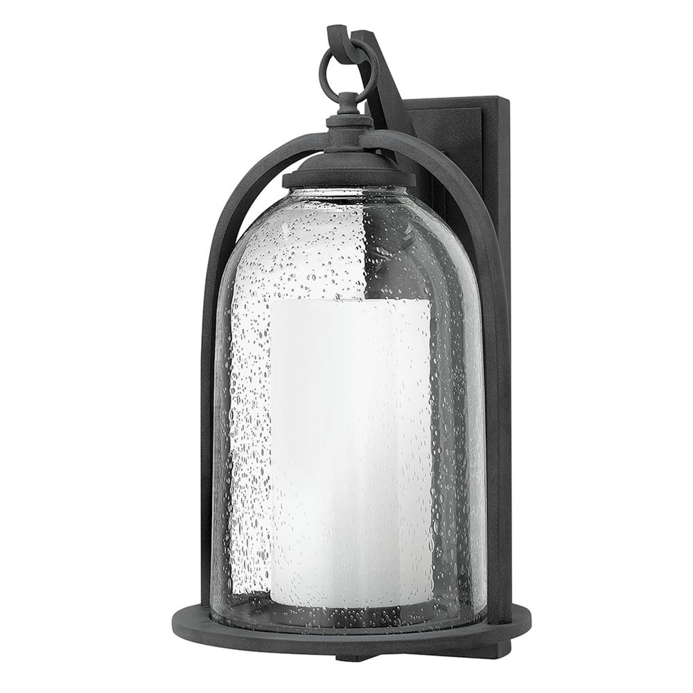 Quincy's traditional bell-shaped design in die cast aluminum construction evokes early Americana. The seedy outer glass and interior amber cylinder, acting as a "faux" candle, adds to its nostalgic feel.