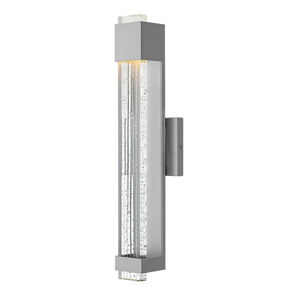 Glacier’s impressive form merges industrial and contemporary design elements into a breath-taking silhouette. A substantial block of clear seedy glass with etched grooves brilliantly channels light from the high-performance LED, which is held in suspension by the powder-coated aluminum frame.