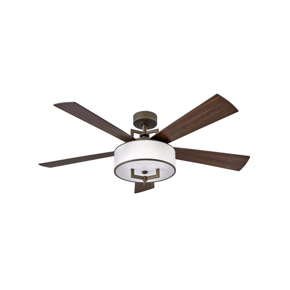 Hampton is a modern transitional design, offering the ultimate in urban sophistication. The minimal, rectangular frame, paired with a decorative acrylic etched bottom lens and sleek blades is softened by a contemporary off-white linen drum shade. Available in Metallic Matte Bronze with Walnut or Metallic Matte Bronze blades, Brushed Nickel with Walnut or Silver blades, Heritage Brass with Birch or Matte White blades, Hampton is perfect for any interior decor.