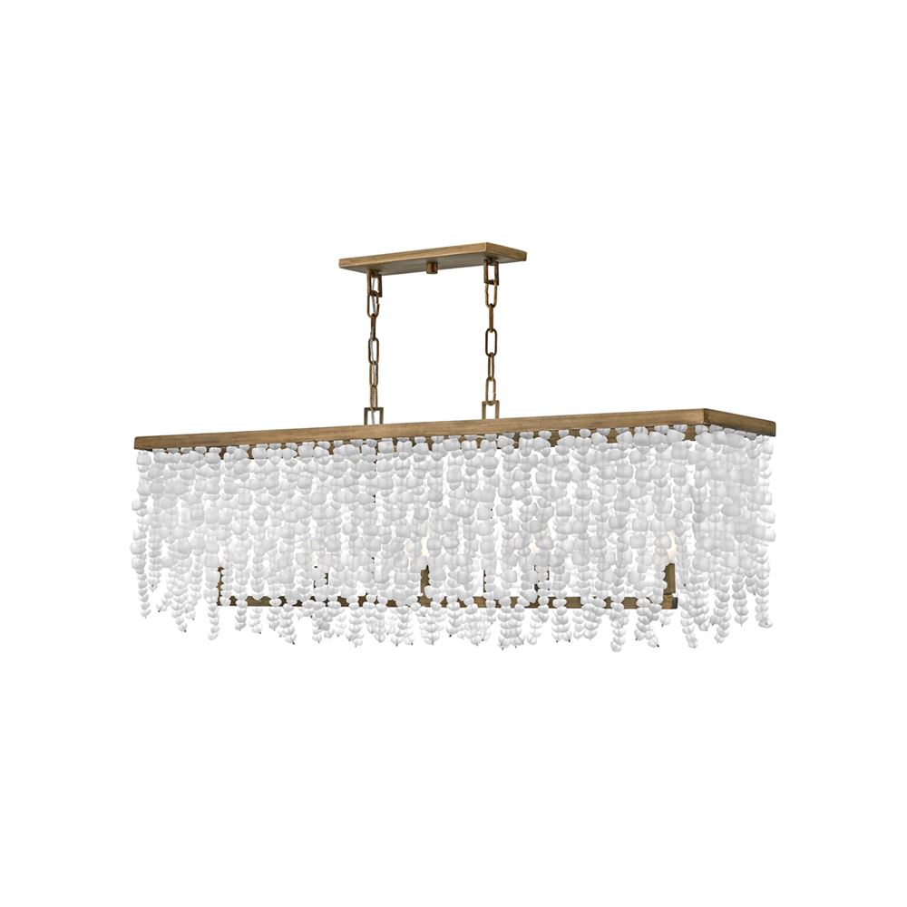 Dune's bohemian chic design showcases strands of soft white sea glass combined with a Burnished Gold finish. The designs blend a sophisticated silhouette with organic elements inspired by sun and surf. Dune infuses any space with a timeless, mesmerizing elegance.