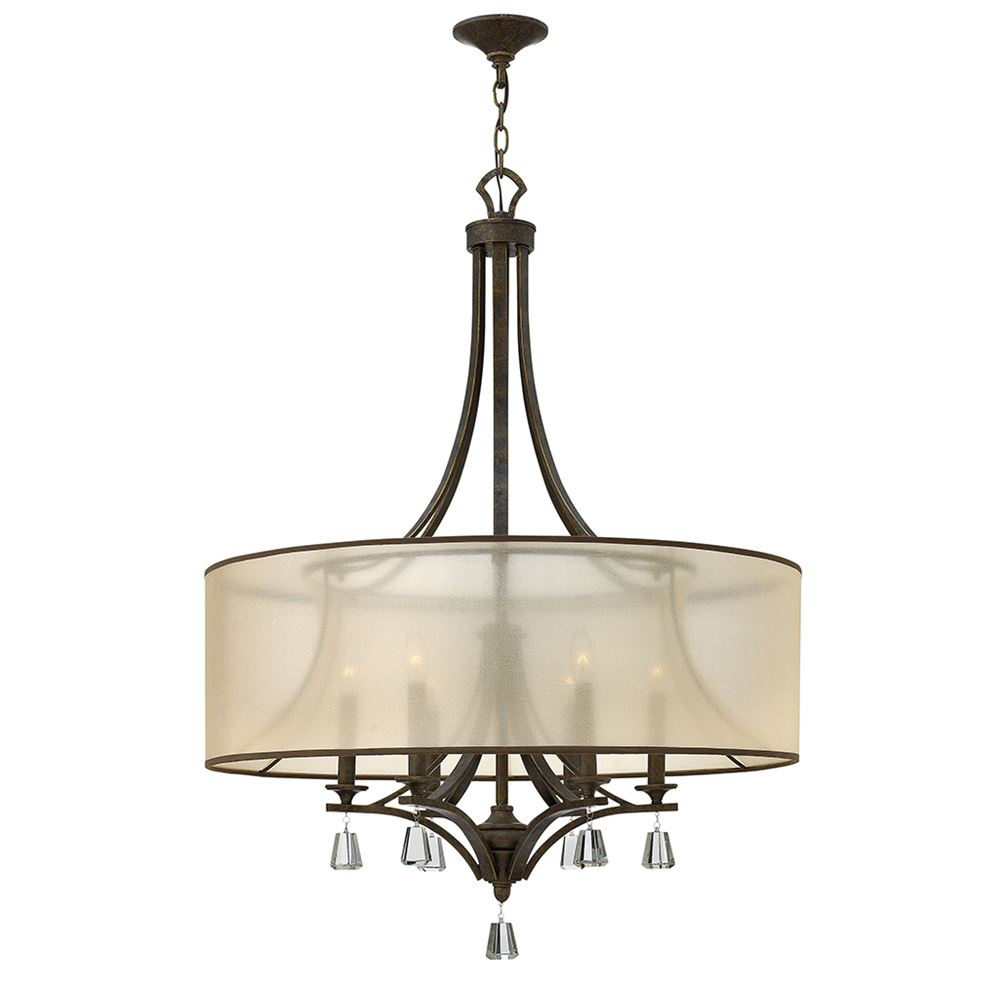 This elegant collection in our Brushed Nickel and French Bronze finish features a sheer translucent double hardback shade and tapered square crystal accents.