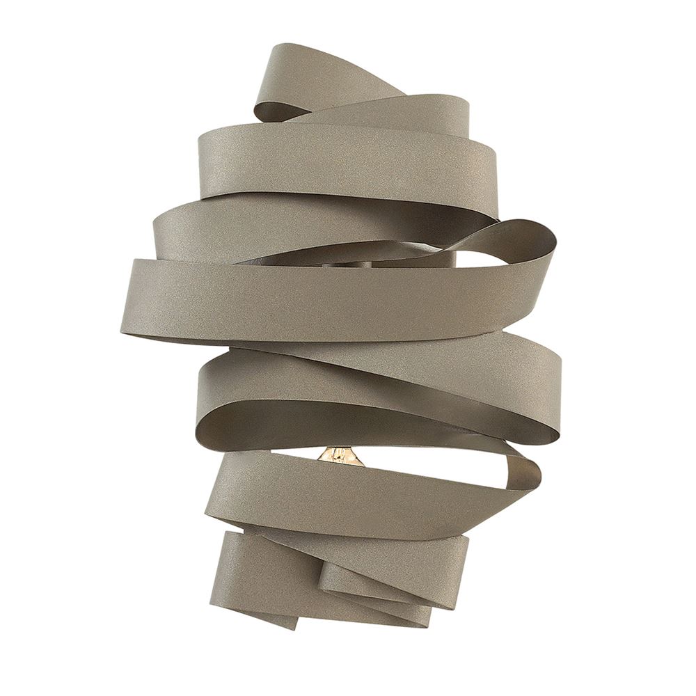 Delfina features a boldly elegant steel ribbon available in Deluxe Gold or Metallic Matte Bronze. This organic shape is both visually intriguing and pleasing as the light flows gently across the overlapping bands.