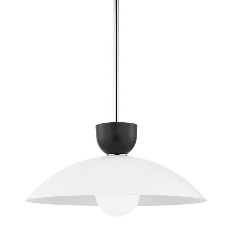 Like a flowering lotus, Whitley expands outward, feeling infinite in her reach. Dueling finishes in soft black and white present a yin yang effect, anchored by a crisp metal arm in aged brass or polished nickel. Available as a pendant in two sizes and a dramatic swing arm wall sconce. Not sure where to place the wall light? Try Whitley over a reading banquet or writing desk.