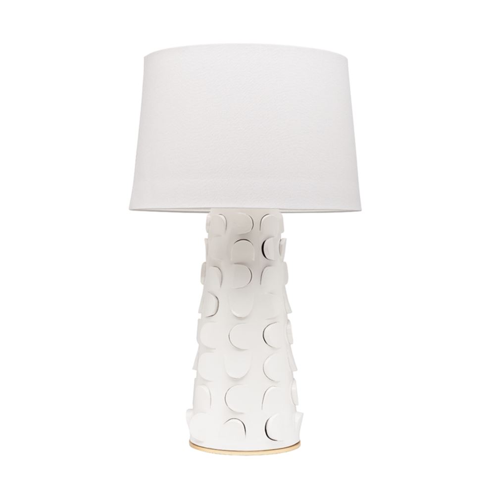 This 1-LT Table Lamp from Mitzi has a finish of White/Gold Leaf and fits in well with any Modern, Sculptural & Geometric style decor.