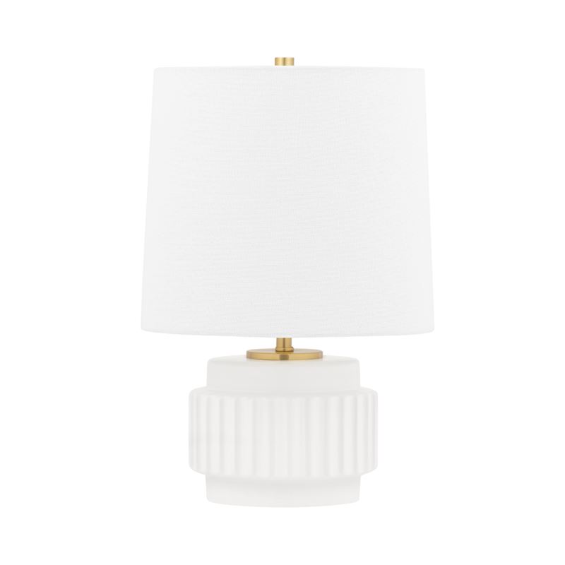 This 1 Light Table Lamp from Mitzi has a finish of Matte White and fits in well with any Transitional style decor.