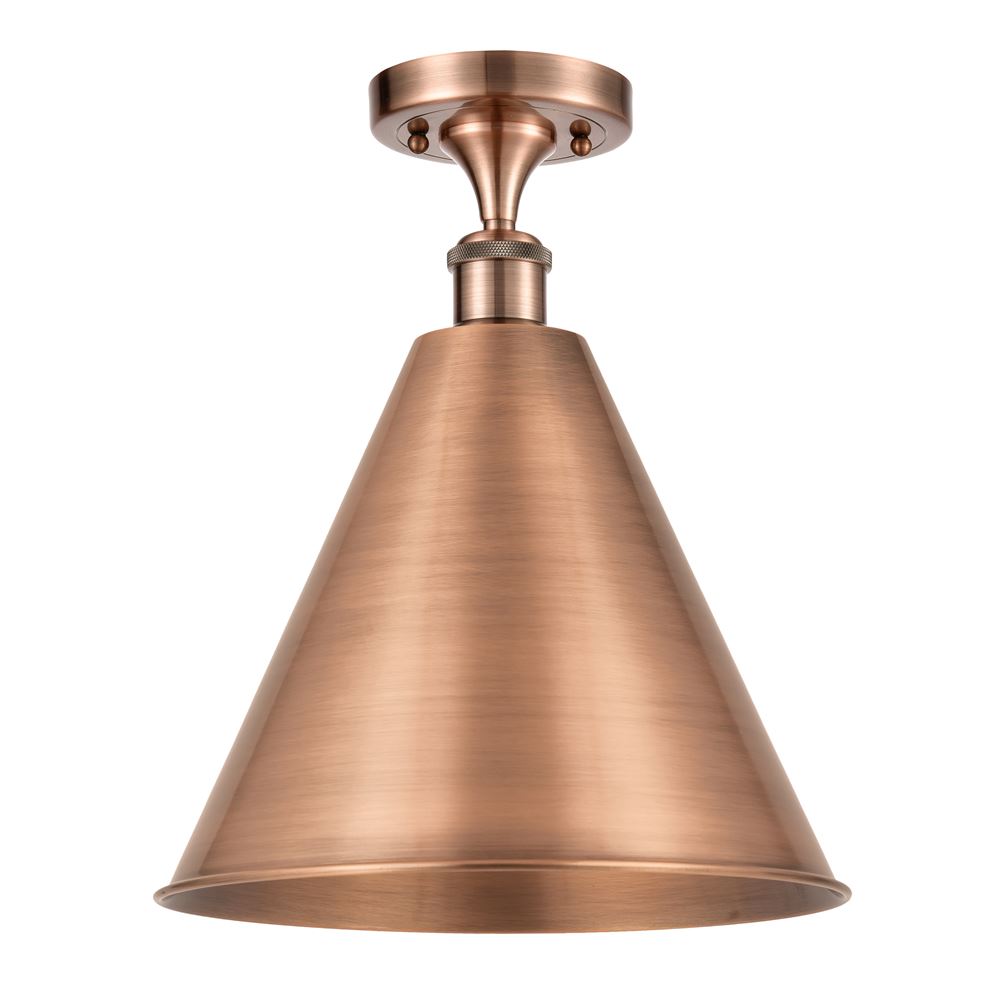 This 1-LT Semi-Flush Mount from Innovations has a finish of Antique Copper and fits in well with any Industrial style decor.