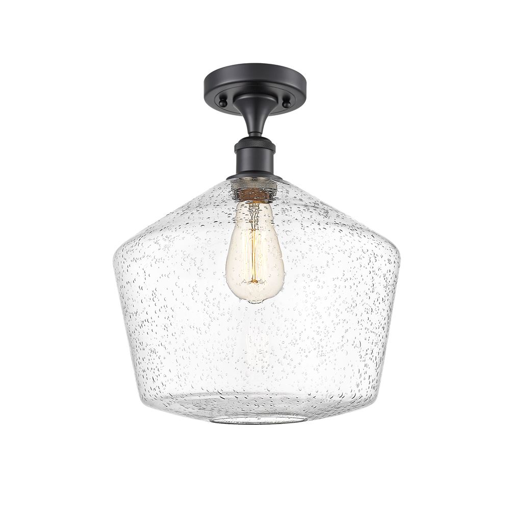This 1-LT Semi-Flush Mount from Innovations has a finish of Matte Black and fits in well with any Nautical style decor.