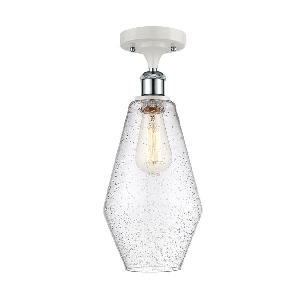 This 1-LT Semi-Flush Mount from Innovations has a finish of White and Polished Chrome and fits in well with any Nautical style decor.
