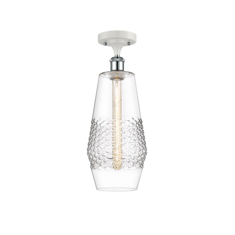 This LED Semi-Flush Mount from Innovations has a finish of White and Polished Chrome and fits in well with any Industrial style decor.