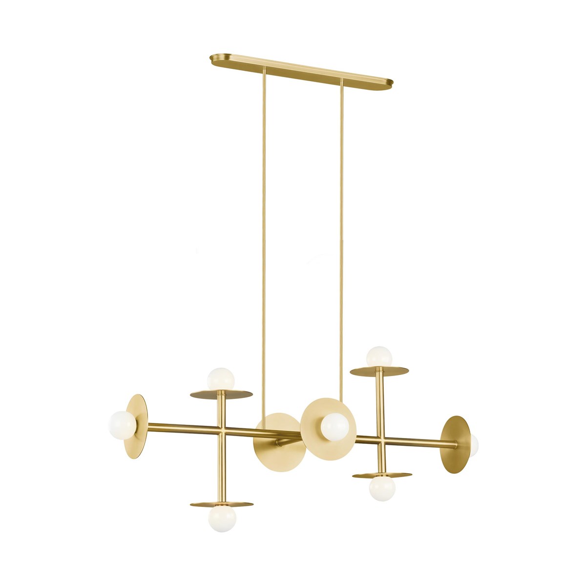 Nodes task, ceiling and wall lighting is minimal yet bold, highlighting Kelly's distinctive juxtaposition of mixed-materiality and curvilinear form. Light radiates from milk glass globes set against metal discs. All fixtures can be used or without the discs. The cast canopy is available in Burnished Brass or Midnight Black. Hanging fixtures within this family feature black fabric cords, while pivot sconces can be cord and plug or hard wire.