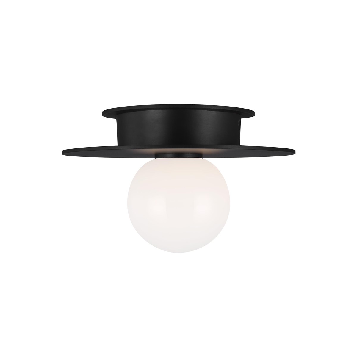 Nodes task, ceiling and wall lighting is minimal yet bold, highlighting Kelly's distinctive juxtaposition of mixed-materiality and curvilinear form. Light radiates from milk glass globes set against metal discs. All fixtures can be used or without the discs. The cast canopy is available in Burnished Brass or Midnight Black. Hanging fixtures within this family feature black fabric cords, while pivot sconces can be cord and plug or hard wire.