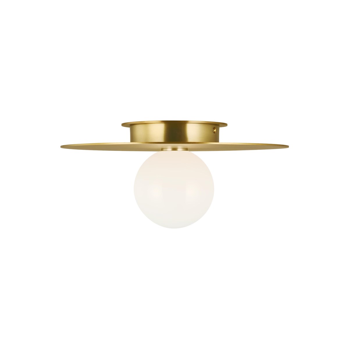 Nodes task, ceiling and wall lighting is minimal yet bold, highlighting Kelly's distinctive juxtaposition of mixed-materiality and curvilinear form. Light radiates from milk glass globes set against metal discs. All fixtures can be used or without the discs. The cast canopy is available in Burnished Brass or Midnight Black. Hanging fixtures within this family feature black fabric cords, while pivot sconces can be cord and plug or hard wire.