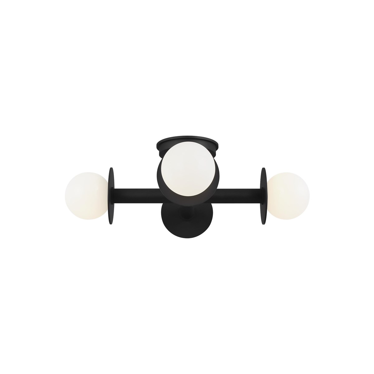 Nodes task, ceiling and wall lighting is minimal yet bold, highlighting Kelly's distinctive juxtaposition of mixed-materiality and curvilinear form. Light radiates from milk glass globes set against metal discs. All fixtures can be used or without the discs. The cast canopy is available in Burnished Brass or Midnight Black. Hanging fixtures within this family feature black fabric cords, while pivot sconces can be cord and plug or hard wire.