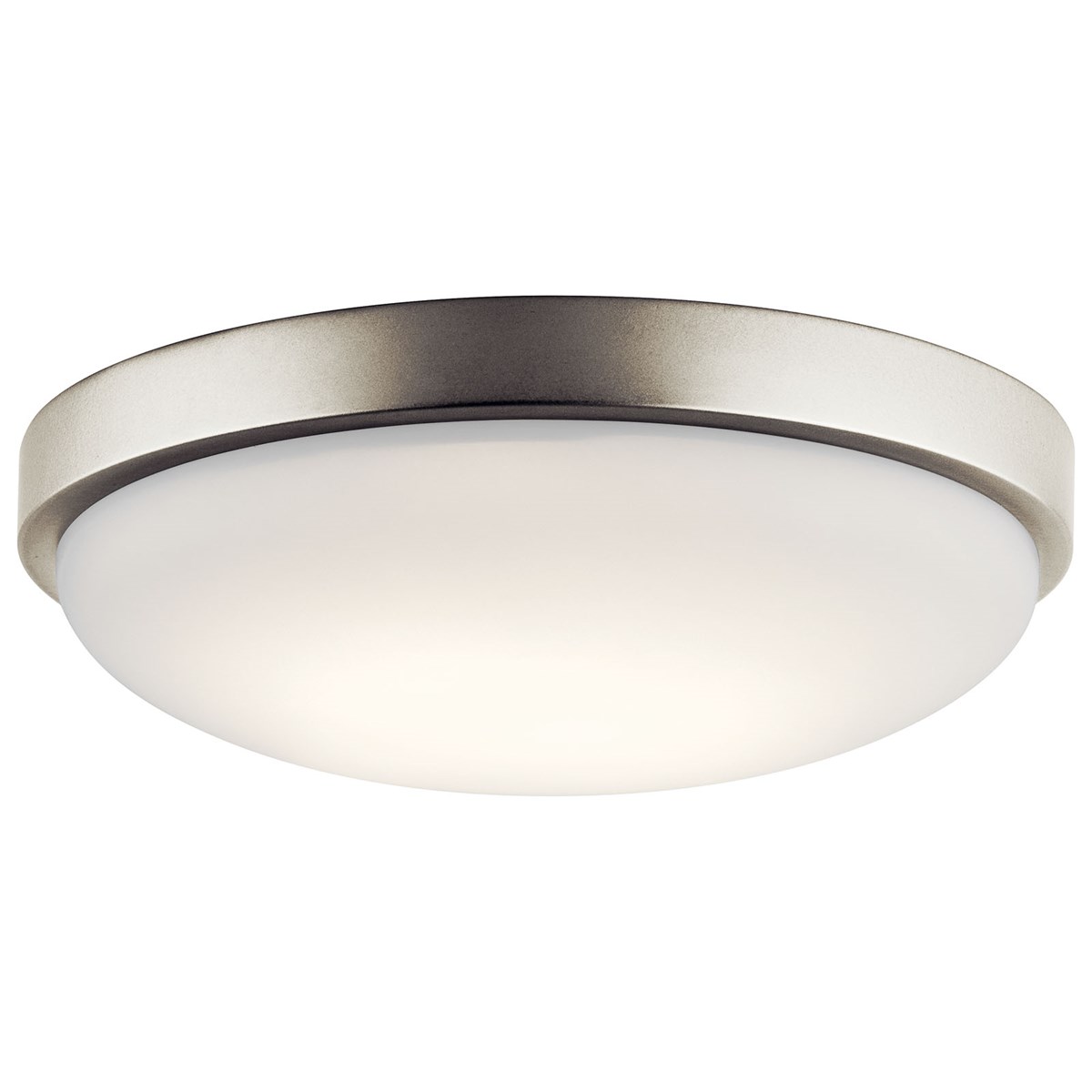 Add this simple LED flush mount ceiling light for additional atmosphere. It features Brushed Nickel finish with a white acrylic diffuser.