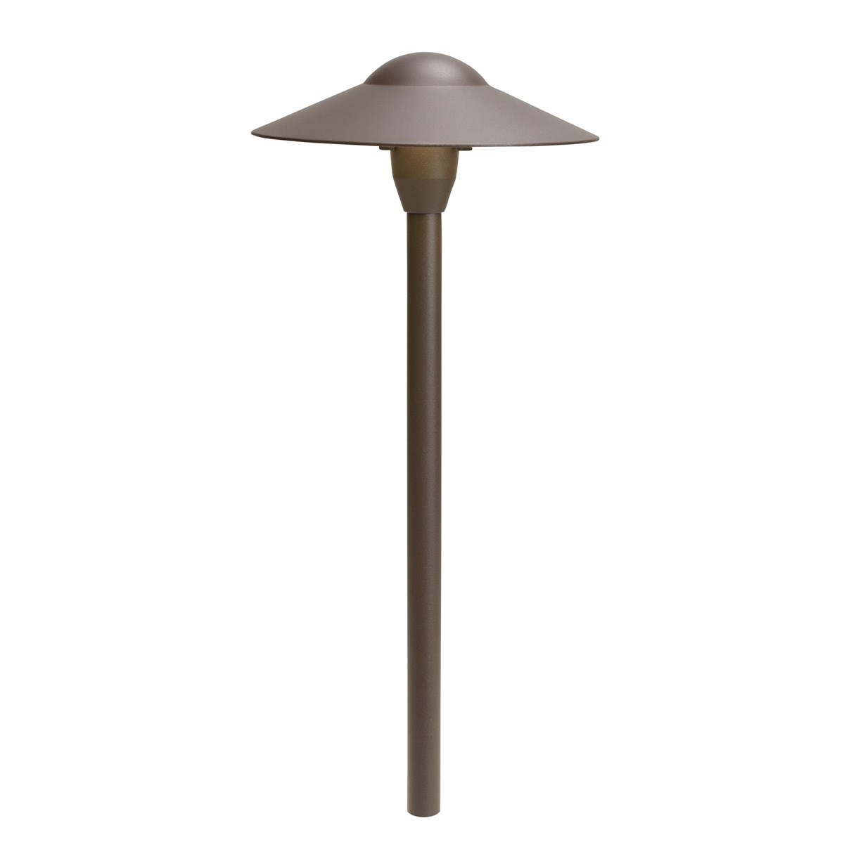 DOME PATH LIGHT - A wider path and spread light that is unobtrusive in the landscape. Available in Textured Architected Bronze. or sandy-colored Beach finish coordinating with lighter-colored pathways and home exterior finishes.