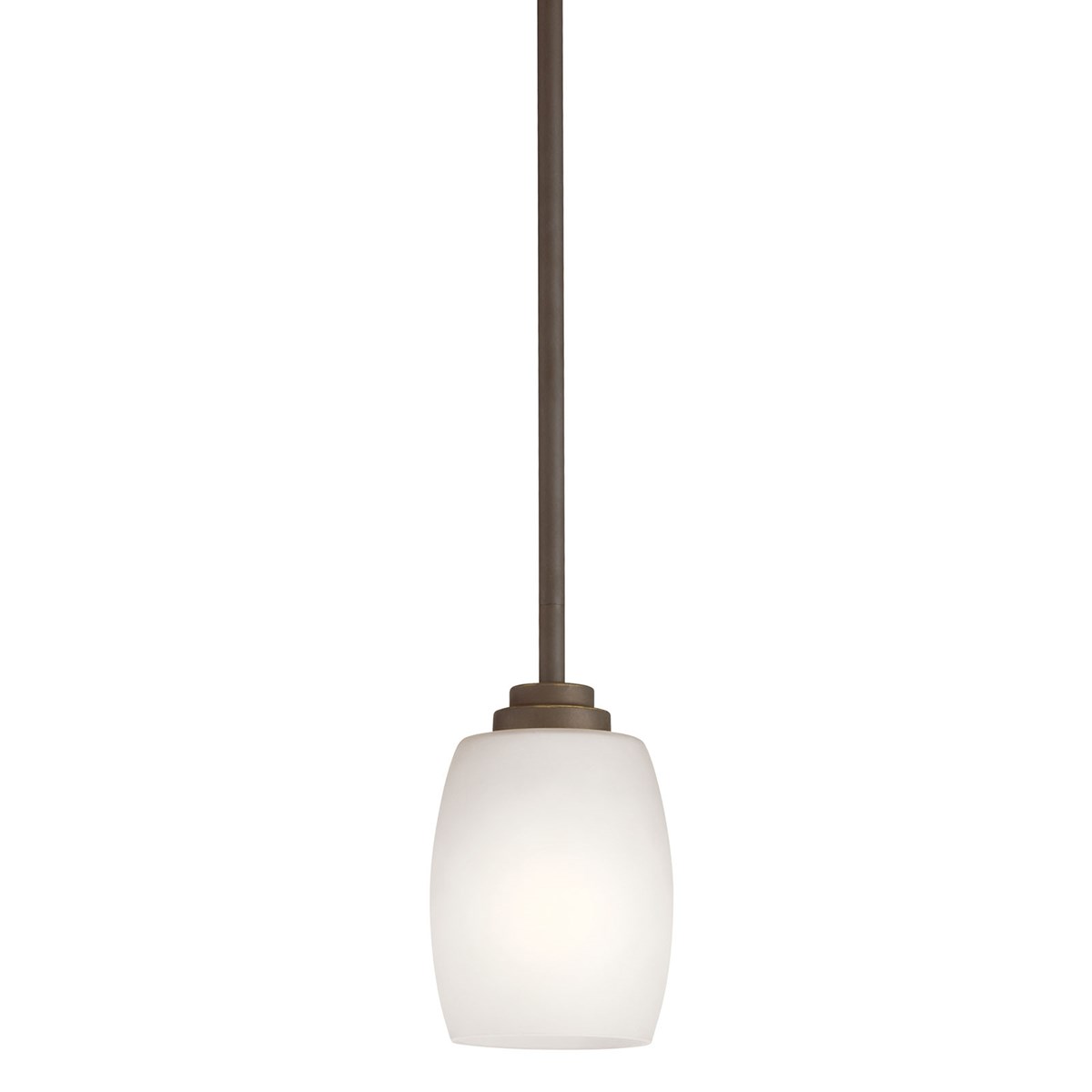 This 1 light mini-pendant from the Eileen Collection features a clean, straight linear construction with simple glass for a style that is as unique and contemporary as Eileen Gray. The warm elegance of our Olde Bronze(R) finish complements the satin etched cased opal glass perfectly to give the Eileen Collection added ambiance that is ideal for today's ever-evolving aesthetic.