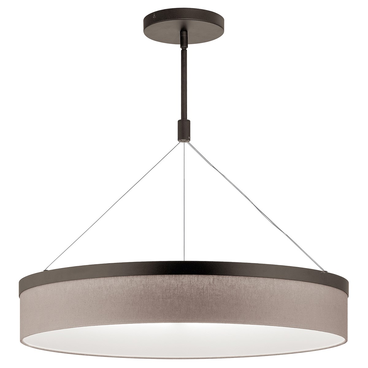 Add softness to modern dining tables and kitchen islands with the floating style of the Mercel 3 light chandelier/pendant in Olde Bronze. A sheer linen shade in grey or white appears suspended in air by thin wires. The LED light delivers illumination while keeping the look clean and simple.