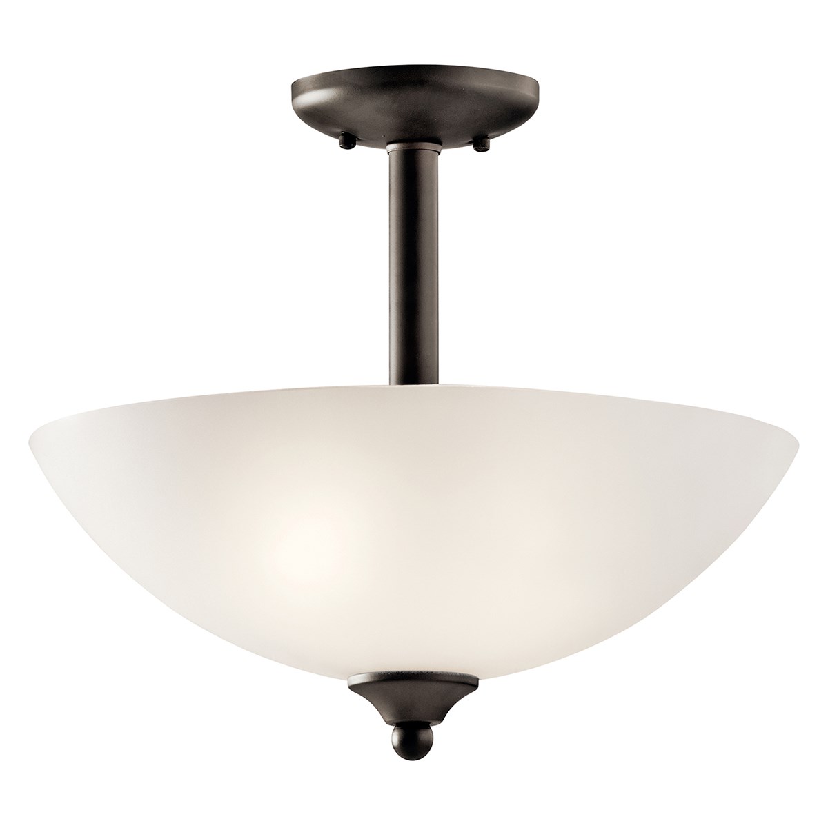 Enjoy the splendor of this Olde Bronze 2 light LED convertible pendant/ semi flush ceiling light from the refreshing Jolie Collection. The clean lines are beautifully accented by satin etched glass. Jolie is the perfect transitional style for a variety of homes.