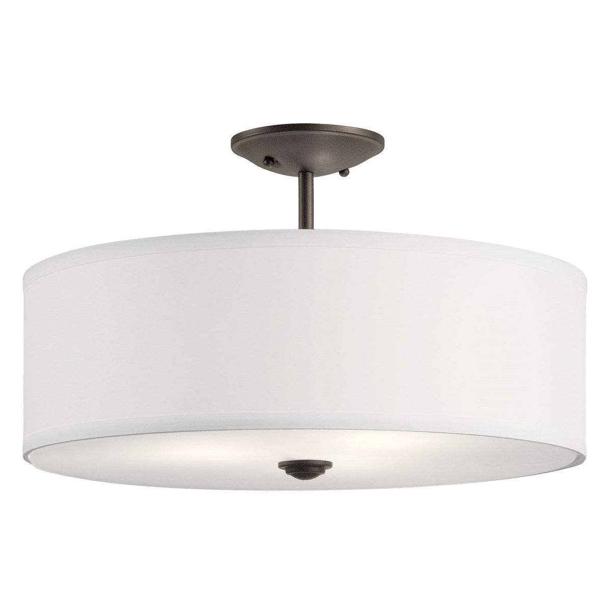 The straight lines and up-sized Satin Etched glass of this Olde Bronze 3-light semi flush ceiling light from the Shailene collection create the perfect casual look for the updated urban lifestyle.