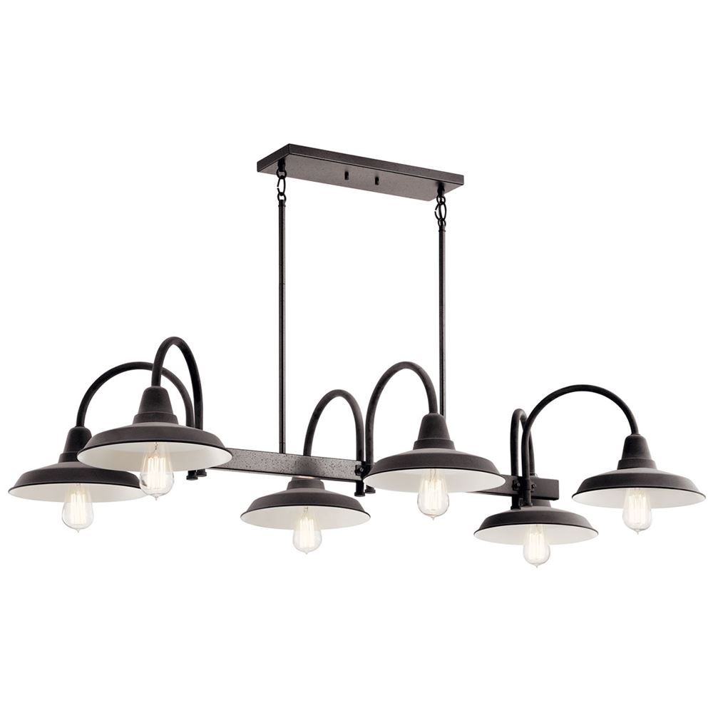 This 6-LT Linear Chandelier from Kichler has a finish of Weathered Zinc and fits in well with any Industrial style decor.