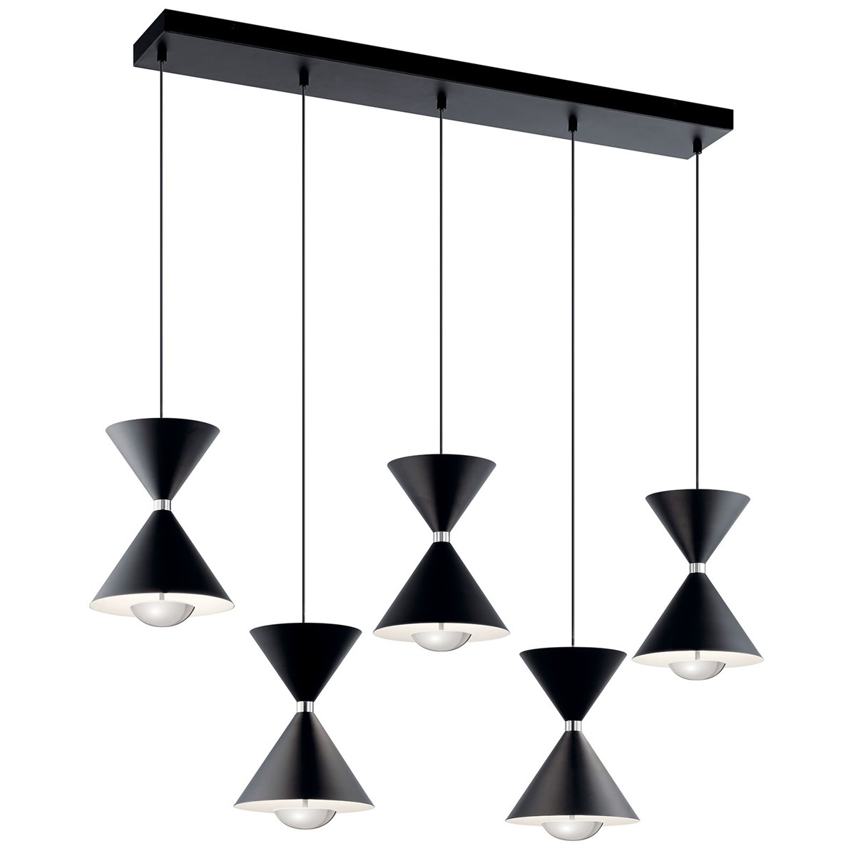Kordan's finish and form are inspired by a cocktail shaker in a sleek matte black finish. Mix it up how you like with wires that can be adjusted during installation: in perfect linear synch, in a pattern or in random heights.