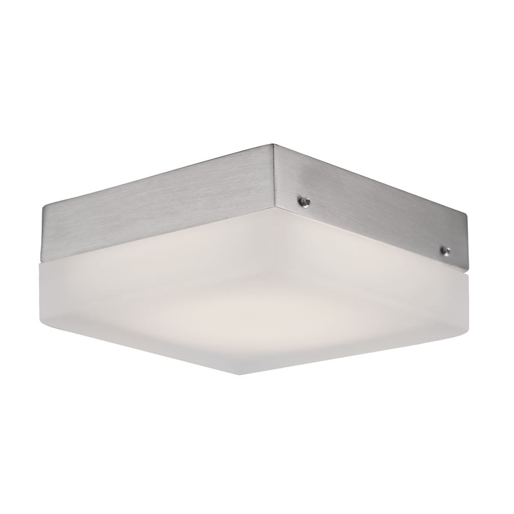 Single LED square Flush Mount mount Ceiling Light fixture with two finishes. Square glass polished surface and painted white interior with chrome finish or square glass frosted and painted white interior with brushed nickel finish.