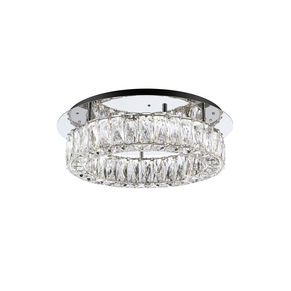 Single ring LED semi-flush mount, with exquisite diamond cut clear crystals which reflects the light beautifully within the fixture and around the surrounding room. Equipped with our powerful 120V AC LED technology, 23W, fully dimmable. Available in two different sizes, view series for full family details on a variety of semi-flush, vanity, single pendant and multi-pendant arrangements.